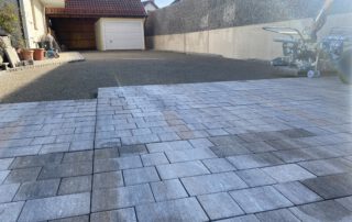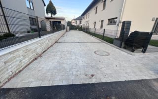Die eigentliche Verlegung der Pflastersteine erfolgt in verschiedenen Verlegemustern, je nach Kundenwunsch und gewünschtem Erscheinungsbild. Dabei werden die Steine präzise und gleichmäßig verlegt, um eine ebene und ansprechende Oberfläche zu schaffen.